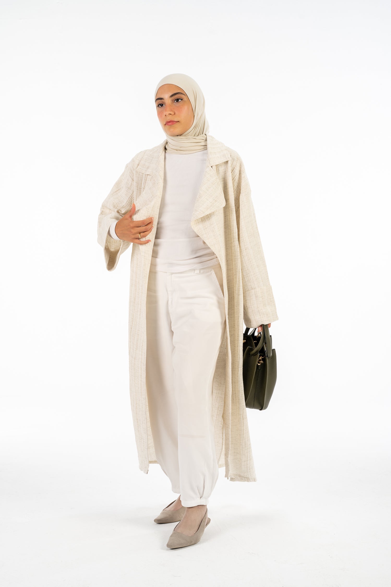 Discover the details of our linen cardigan, the perfect blend of comfort and style for your summer wardrobe.
